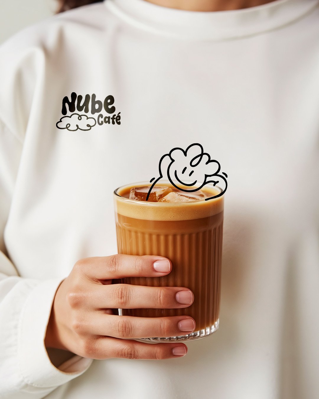 Nube es una cafetería que entiende el café como una pausa, no como una prisa. El proyecto se centró en crear una identidad visual que reflejara esa sensación de ligereza y calidez, aplicándola en los elementos del día a día: vasos, servilletas, cartas y señalética.